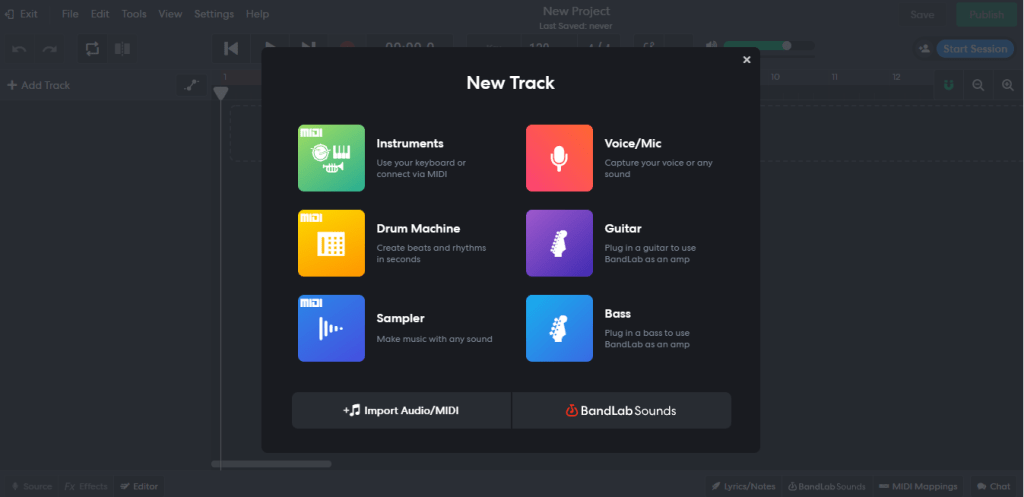 8. Legg til et nytt spor – Velg en basslyd som du synes låter bra.